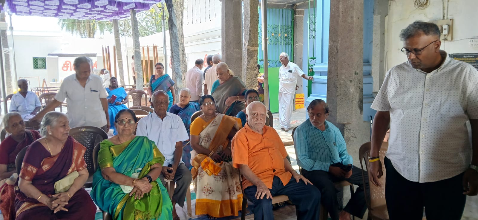 Before heading to the temples, a comfortable halt had been arranged at a kalyana mandapam owned by Shri Bhaskar, allowing the elders to rest.
