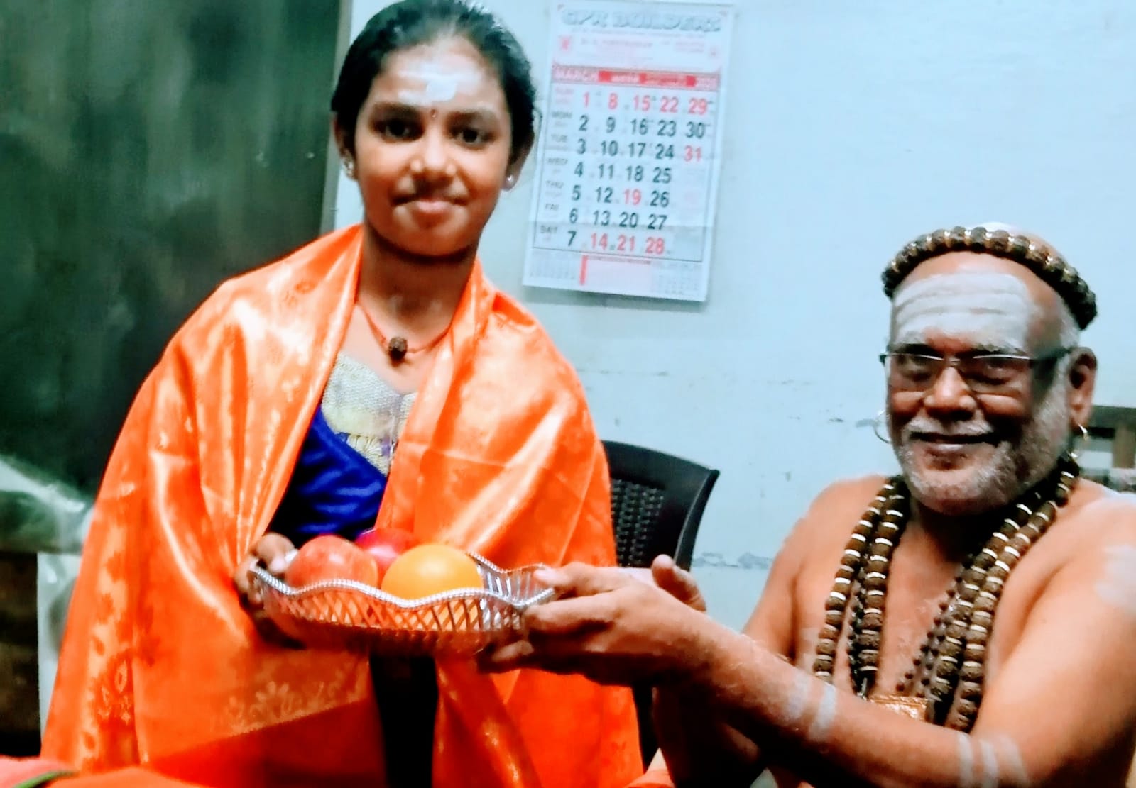 As the elders alighted from the bus, they were welcomed ceremoniously with the auspicious nadaswaram, creating a truly festive atmosphere. A temple festival was underway and there were some locals getting ready for it along with the Gurukkal.